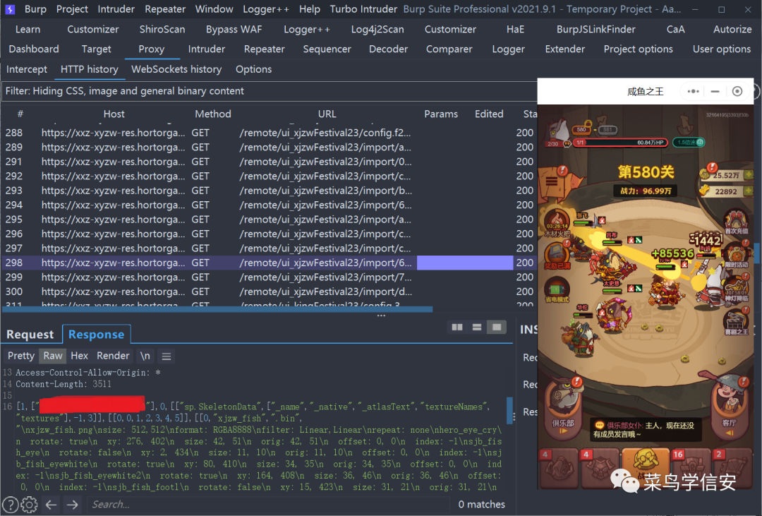 随便找个小程序,然后看Burp中 Proxy 的 HTTP History 有无反应: