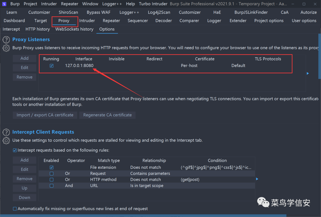 注:这里Burp中 Proxy 的 Intercept 要选择将流量放行