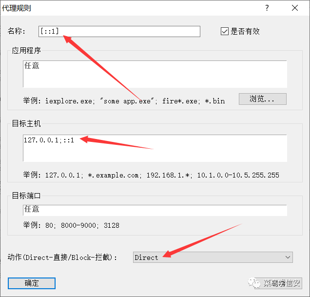 应用程序处点击“浏览”可以设置指定程序,目标端口处可以设置指定端口(一般不设置)