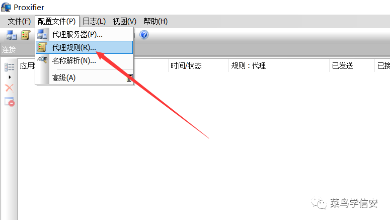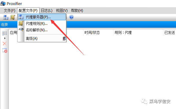 打开安装好的 Proxifier ,点击菜单栏“配置文件”中的“代理服务器”