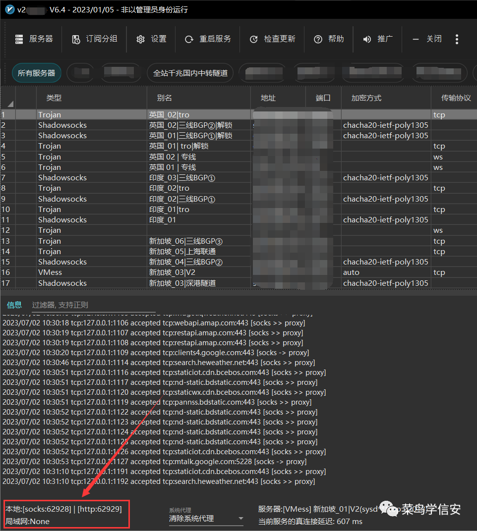 注:使用本地代理端口,请先测试本地客户端的代理能否可用
