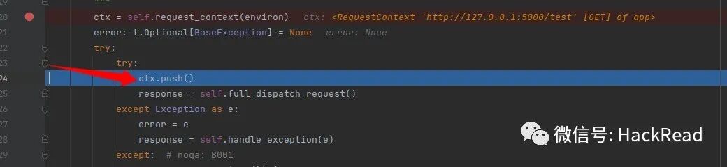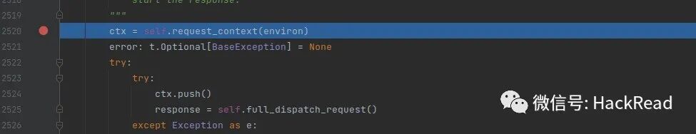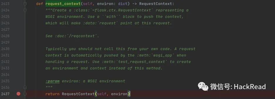 此处调用了flask.app.Flask.request_context创建一个请求上下文RequestContext类型的对象,: