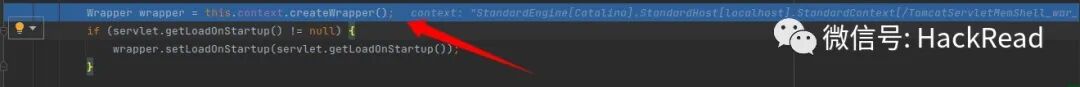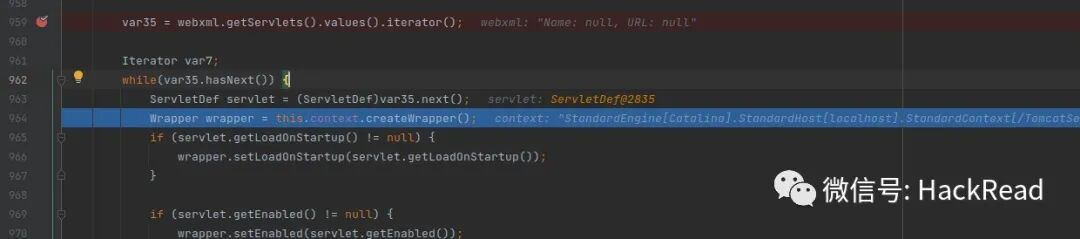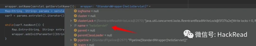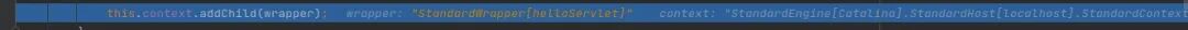 可以看到this.context是一个StandardContext对象。那我们继续调试看看对Wrapper进行了哪些操作:
