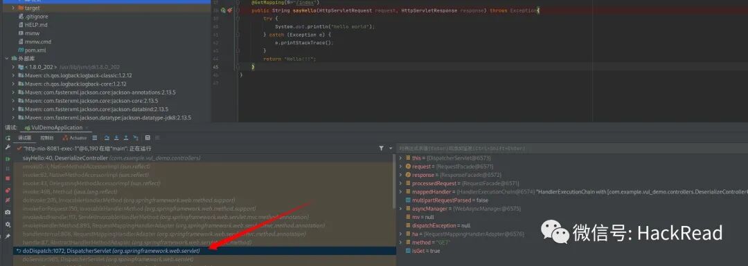 并修改HelloServlet的doPost方法,我们手动构造一个反序列化漏洞环境: