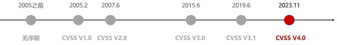 CVSS(Common Vulnerability Scoring System)由美国国家基础设施咨询委员会(National Infrastructure Advisory Council,NIAC)发起,NIAC后来将CVSS评分标准托管给FIRST(Forum of Incident Response and Security Teams)维护(FIRST CVSS SIG)。目前已经发布了5个版本。下图回顾了CVSS标准的发展史。