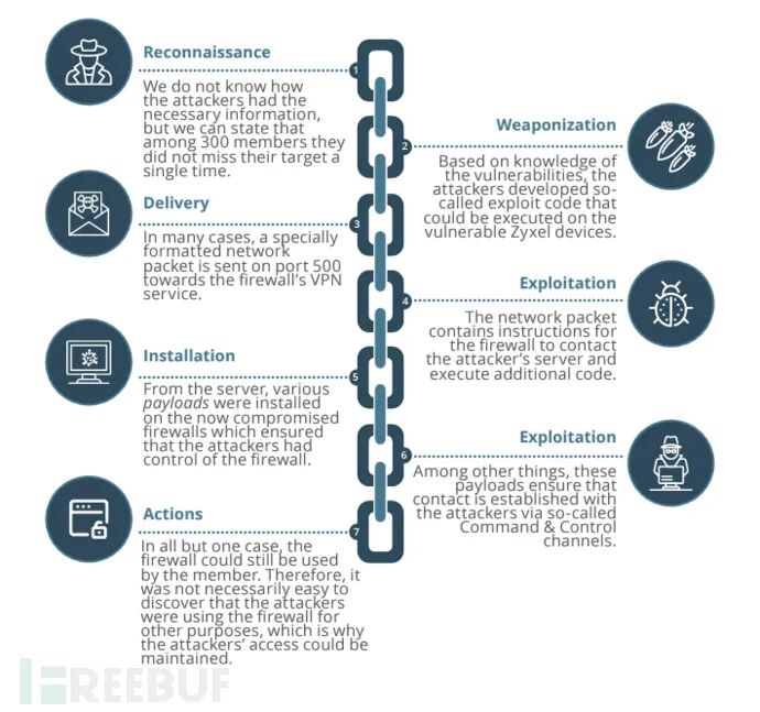 Security Affairs 网站消息,丹麦计算机安全事件响应小组(CSIRT)SektorCERT 披露,丹麦关键基础设施在 5 月份遭遇了有史以来最大规模的网络攻击。据悉,威胁攻击者在 5 月 11 日发起了第一次攻击活动。经过短暂停顿后,5 月 22 日又开始发动了第二波攻击活动,当天,SektorCERT 察觉到自身出现安全问题。SektorCERT 在报告指出,威胁攻击者利用丹麦关键基础设施运营商使用的 Zyxel 防火墙中的零日漏洞,成功破坏了 22 家能源基础设施公司(11 家公司立即遭到网络威胁)。2023 年 4 月 25 日,Zycel 披露其多个防火墙中存在一个关键安全漏洞(CVSS 得分 9.8 ),被追踪为 CVE-2023-28771。Zyxel 发现安全漏洞问题后,立刻发布了安全更新补丁,并敦促其客户尽快安装更新补丁。据悉,存在安全漏洞原因是 Zyxel ZyWALL/USG 系列固件版本 4.60至 4.73、VPN 系列固件版本 4.6 至5.35、USG FLEX 系列固件版本 46.0 至 5.35 以及 ATP 系列固件版本 4600 至 5.35 中某个错误消息处理不当。从 SektorCERT 的报告内容来看,未经身份验证的远程攻击者可以通过向易受攻击的设备发送特制的数据包,并远程执行某些操作系统命令来触发该漏洞。威胁攻击者利用漏洞,通过协议 UDP 向端口 500 发送一个特制数据包,并将其发送到易受攻击的 Zyxel 设备,该数据包被 Zyxel 设备上的互联网密钥交换(IKE)数据包解码器接收,解码器恰恰存在上述 CVE-2023-28771 漏洞。最终的结果就是,威胁攻击者可以在未经身份验证的情况下,直接在设备上执行具有 root 权限的命令,就是说,只要向设备发送一个数据包,威胁攻击者就能发起网络攻击。此外,从11 家公司立即受到了攻击的情况来看,网络攻击者可能提前获得了受害公司防火墙的控制权,从而可以访问防火墙背后的关键基础设施。SektorCERT 安全专家还指出,在发动网络攻击之前,威胁攻击者可能就已经掌握了受害目标的详细信息,这些信息很可能是通过未被发现的侦察活动中获取的。(值得注意的是,目前还没有关于哪些组织使用了易受攻击的防火墙的公开信息)在 SektorCERT 发布的报告中,专家们指出威胁攻击者能够同时攻击多家公司,避免受影响的基础设施与同行共享攻击信息,这种“协调能力”需要计划和资源,再加上威胁行动者能够在大规模活动中利用零日漏洞,推测威胁攻击者可能是一个 APT 组织。此外,安全专家还推测攻击活动背后的“黑手”可能是由多个威胁组织组成,其中至少有一个可以归咎于与俄罗斯有关联的”沙虫“组织。https://securityaffairs.com/154156/apt/denmark-critical-infrastructure-record-attacks.html_gl=1*1kp6uuz*_ga*NjYyNDMxOTU5LjE2MzU5OTc2MDM.*_ga_NPN4VEKBTY*MTcwMDAxMzI3Ni4xNjUuMS4xNzAwMDEzNzI0LjYwLjAuMA..*_ga_8ZWTX5HC4Z*MTcwMDAxMzI3Ni4xNDYuMS4xNzAwMDEzNzI0LjAuMC4w&_ga=2.249070535.1745930476.1699927316-662431959.1635997603