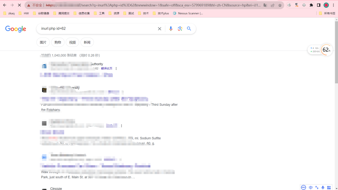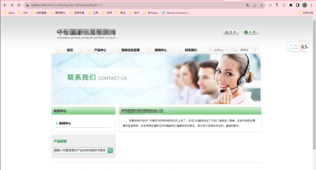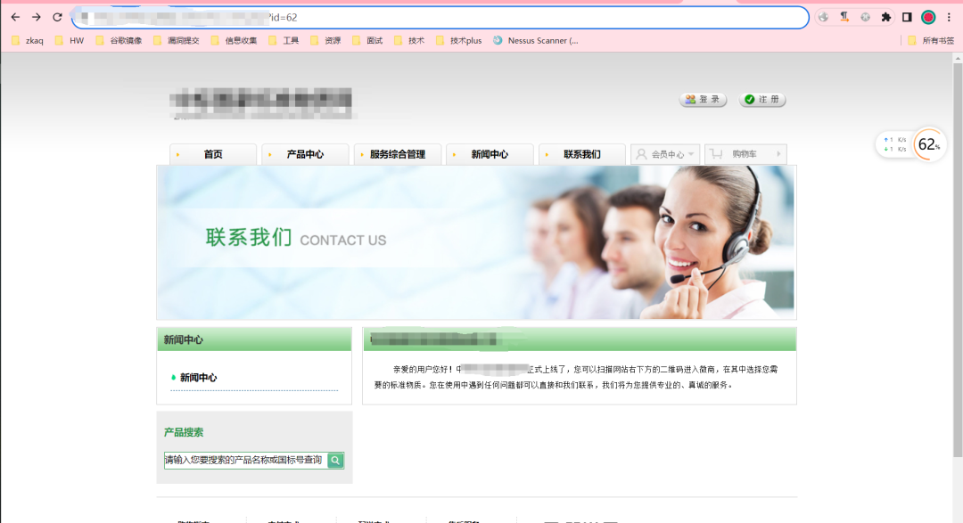 随便点进一个带有id传参=62的网站,大概率存在SQL注入