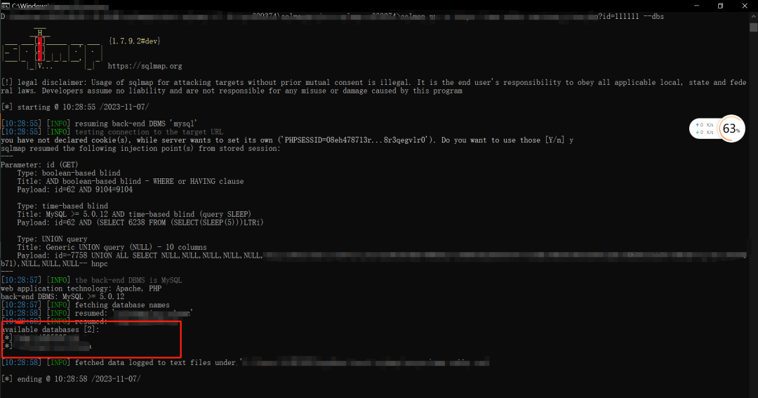 使用sqlmap命令查看库名sqlmap.py -u url --dbs