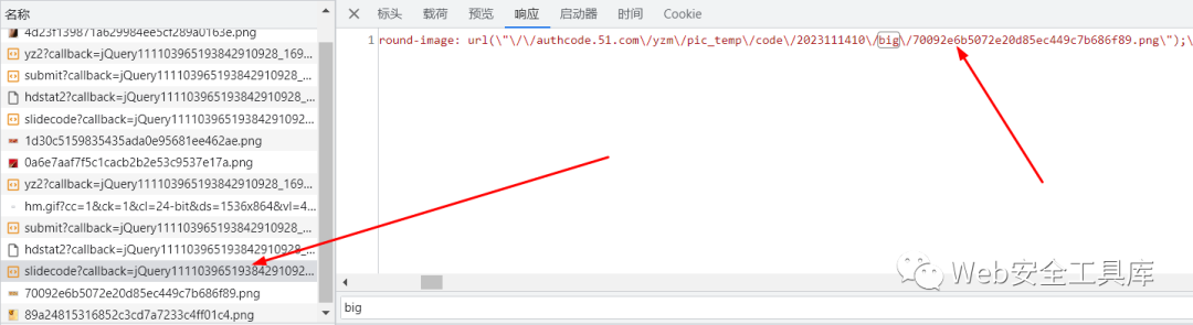 三、继续往上找,找到该图片链接的来源,发现在一个叫slidecode请求包的响应内容里面