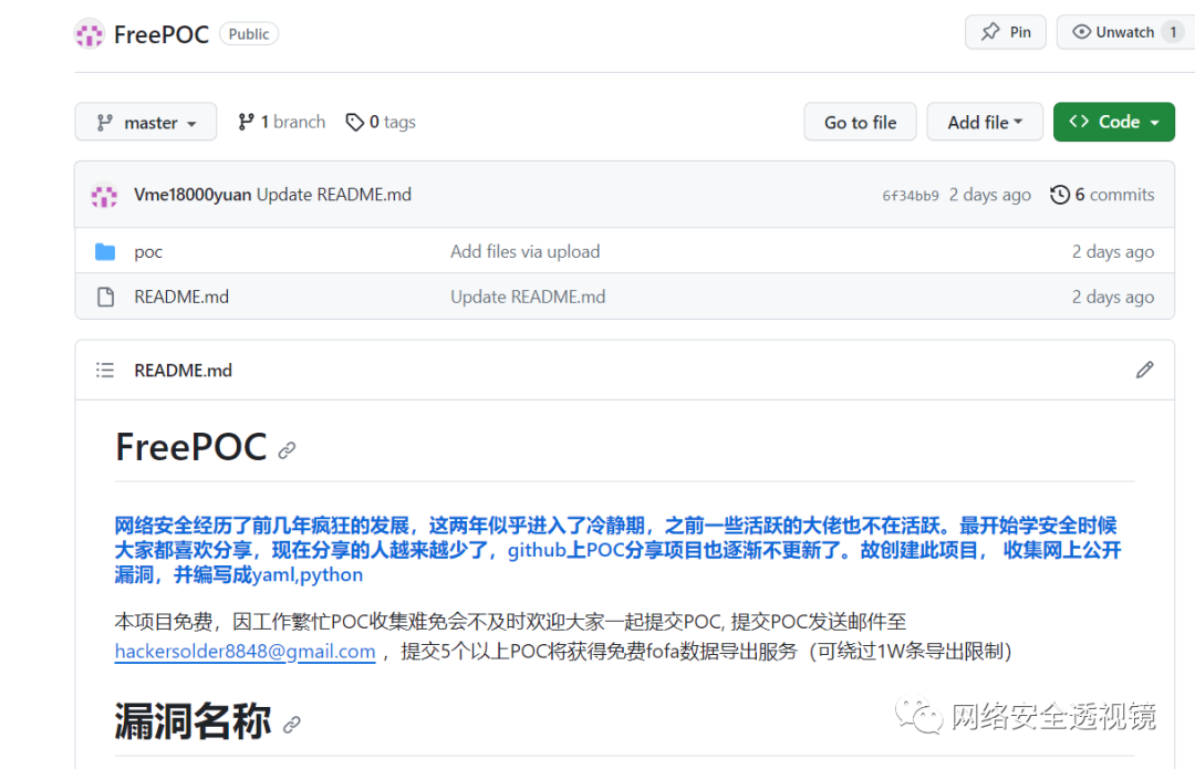 漏洞库地址:https://github.com/Vme18000yuan/FreePOC