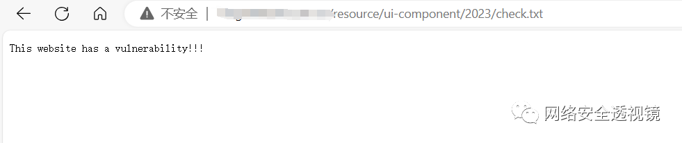 然后访问路径 /resource/ui-component/2023/test.jsp 返回如下,则说明漏洞存在