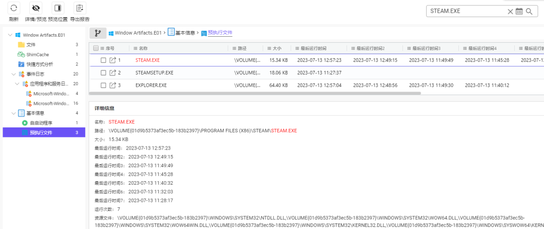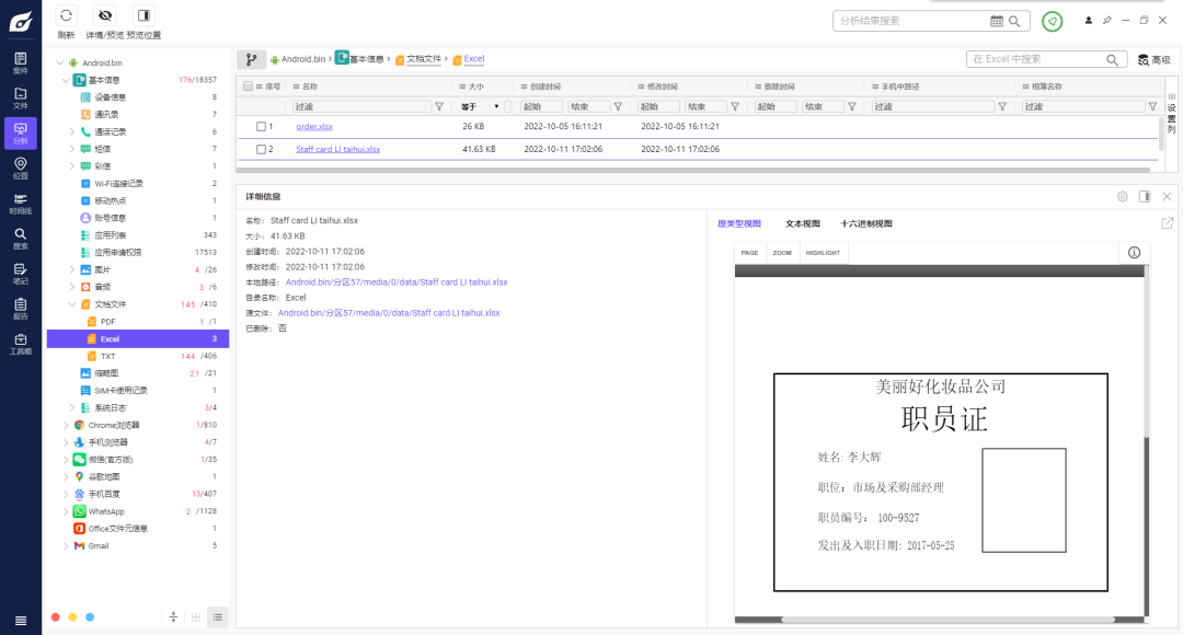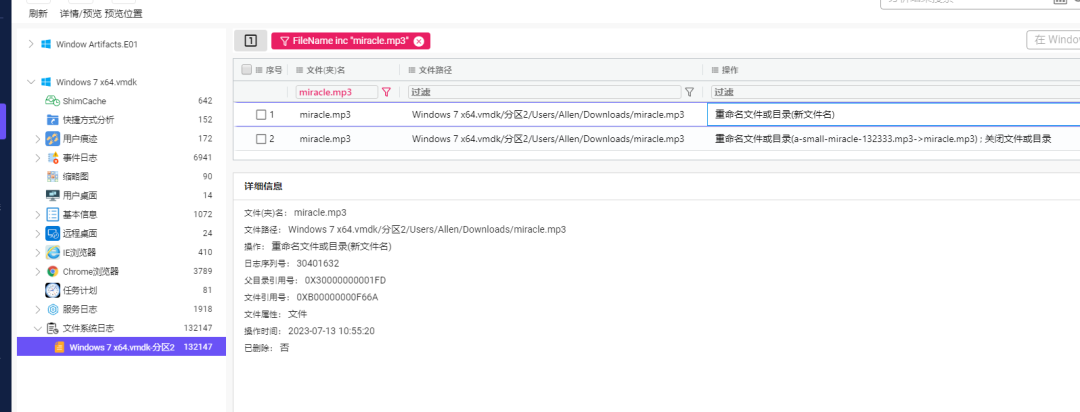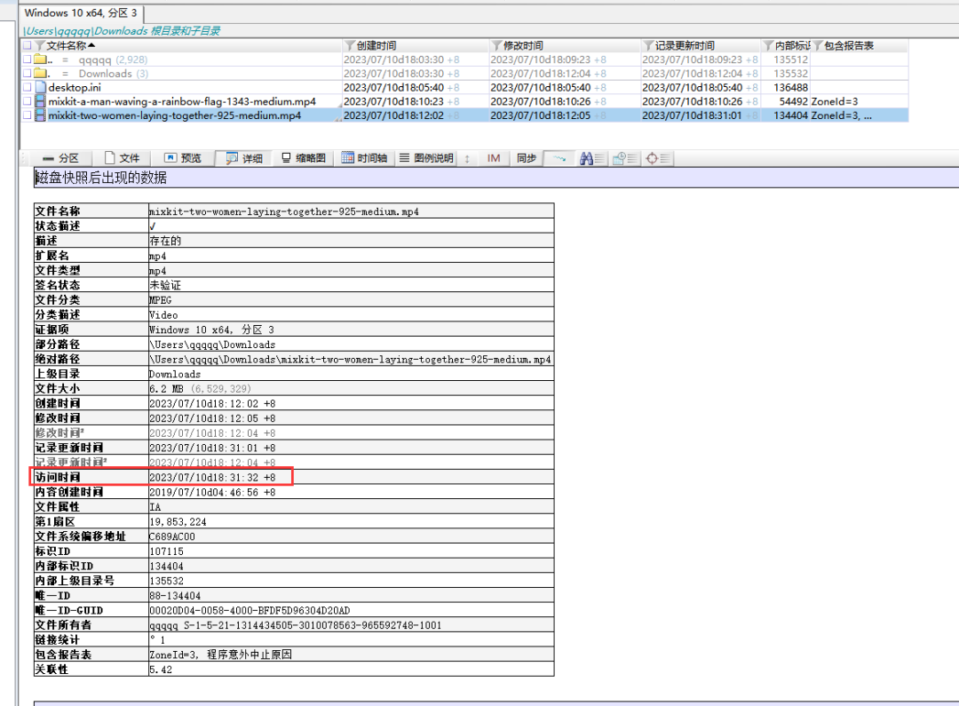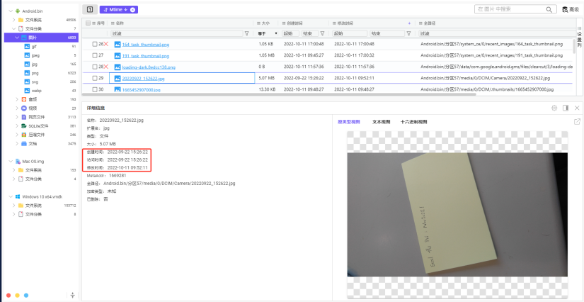 这里是按照同一个对象的检材的顺序来复盘的