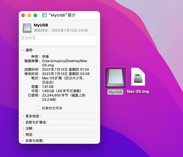 B将Mac OS.img放到MacOS虚拟机中,双击,会出现一个MyUSB