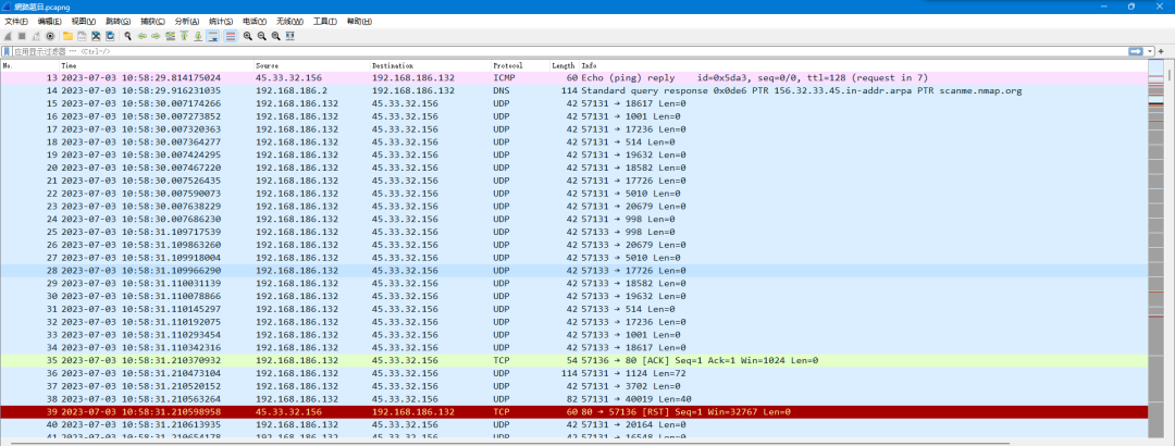 192.168.186.132192.168.186.132UDP扫描45.33.32.156