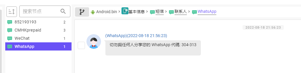 A根据取证软件解析出的内容,发现有WhatsApp