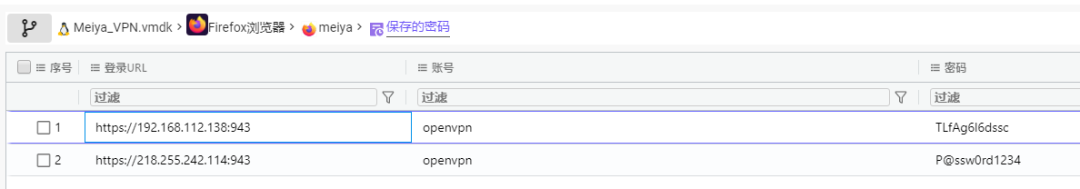 943在Firefox保存的密码中可以看到openvpn的端口为943