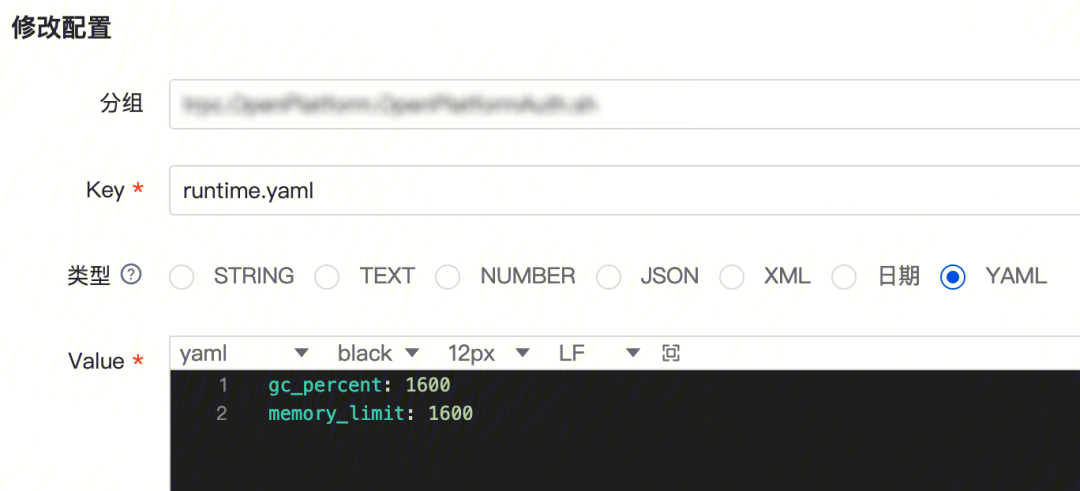 所以这里的解决方案是在运行时配置中新增了一个配置文件,用于存储运行时策略相关的配置,在代码中 Watch,在配置有改动的时调用 SetGCPercent 设置为需要的值:func runtimeConfigureWatcher(c <-chan config.Response) {for r := range c {var rc runtimeConfig