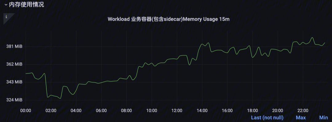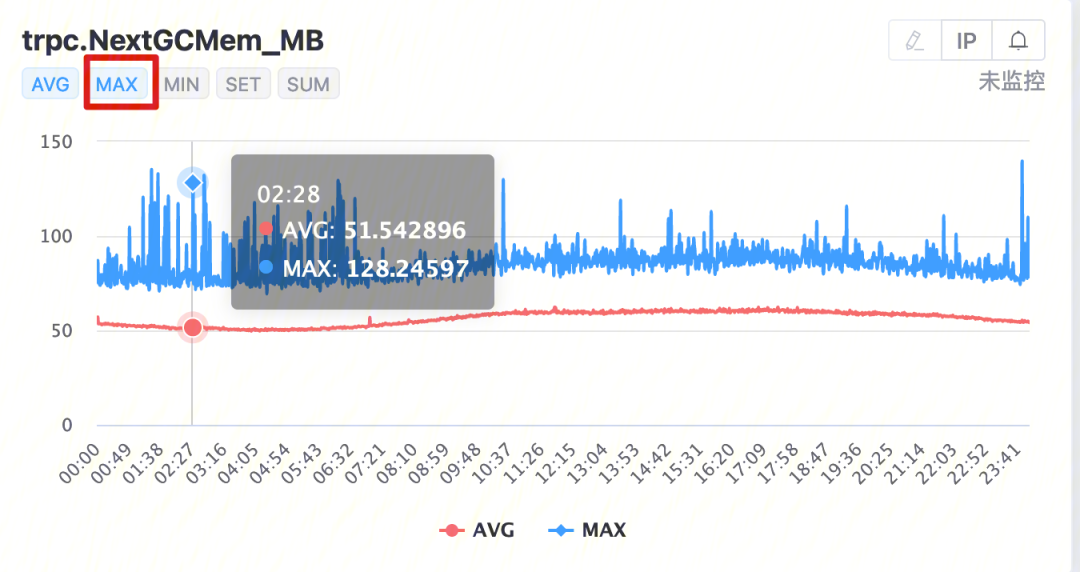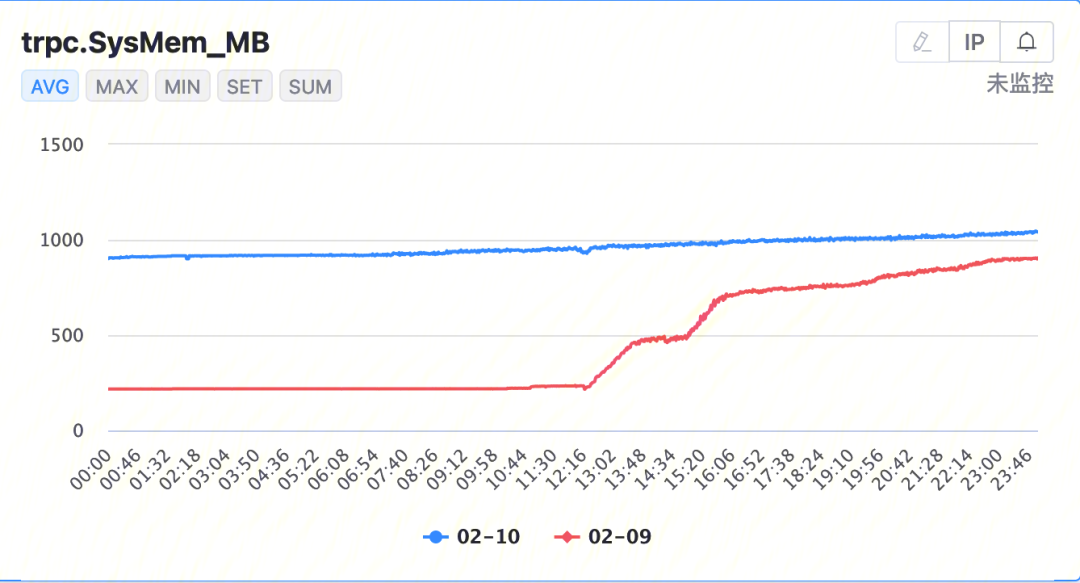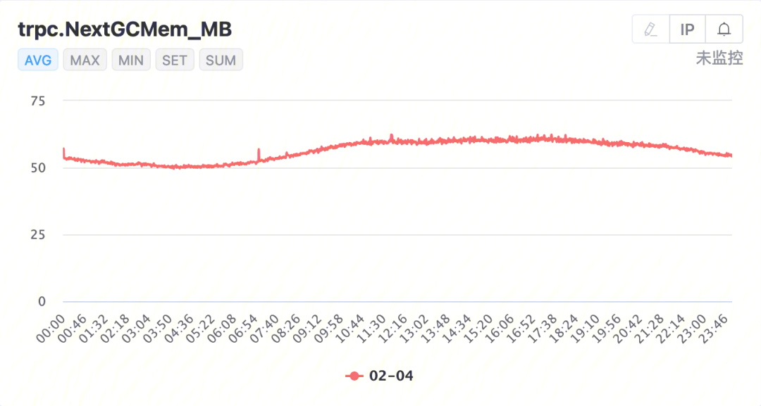 当然,把 GOGC 调大会让 Golang 从 OS 里申请的内存增多,但因为之前实在是太少了,增多之后也还在合理范围内。毕竟申请了内存,不用也是浪费了,这也是空间换时间的思路。以下是调整之后的 SysMem 曲线变化: