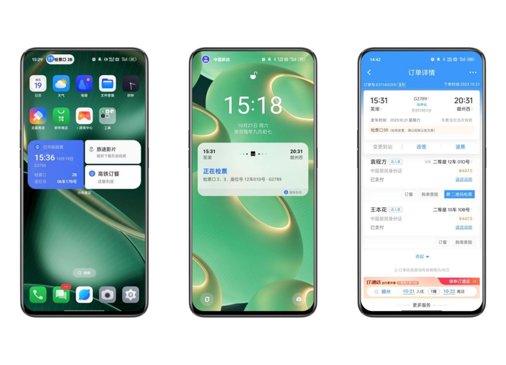 对于大众用户而言,ColorOS 初用就顺手,再用也顺心。所以说,ColorOS 14 的升级,并非注重于有形的外观变化,而是归于众多无形的体验提升。用三个词来总结的话,那便是更智慧,更流畅,更安全。当下,我们正面临信息大爆炸和信息过载的现况。通知的冗杂和过载,是多数用户不得不面临的窘境。实际上,ColorOS 一直都在思考通知消息逻辑关系,并在较早的时候就推出过「闪回键」的功能,用户可以更高效地应对那些需要等待的实时通知,从而实现轻快、高效的操作体验。现在,为了让实时通知可以在显眼处一眼获悉,随时调用;也让应用通知能够智能地按优先级顺序整齐排列,ColorOS 14 选择再次重塑了通知消息的呈现方式,基于泛在服务带来了全新的「流体云」交互。对于一些重要的实时信息,「流体云」会智能地出现在状态栏一侧,将重要信息按需流转,通过气泡、胶囊、面板三种形态来进行提醒,让用户一眼便能获悉信息主次。例如在机场准备乘坐航班的时候,用户在登机前用手机来刷新信息流或者微信聊天时,可能不会时刻关注航班信息的动态变化。当登机口发生变更的话,系统会第一时间通过卡片通知推送给用户,在手机顶栏位置出现 3.5 秒的强提升,然后再转为胶囊通知停留在状态栏 3.5 秒,然后再不干扰用户的情形下转为弱提醒。当然,如果系统识别到用户当下并没有在看手机,那么登机口变更这一重要信息还会通过耳机播报,以多设备流转的形态,让重要的通知提醒及时触达用户。对于经常需要出差且经常会踩点到达站点的 @元芳 来说,「流体云」可以减轻错过高铁的焦虑:在高铁出行时,「流体云」当日会智能提醒检票口、座位号等订单状态和订单详情相关信息,检票的时候会像飞机登机时弹出提醒。像元芳这种喜欢踩点的人,有了这个功能就能减轻错过高铁的焦虑,并且⻓按胶囊即可弹出行程信息面板。