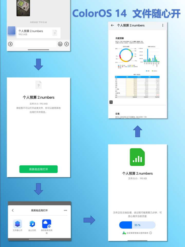 简单来说,只要你更新了 ColorOS 14,你就直接在 OPPO 手机上就能直接看到这个「以前从来都不兼容的文件」。对于众多的 OPPO 手机用户来说,ColorOS 的陪伴已经成为了他们的日常习惯。在变与不变之中,ColorOS 坚持了用户体验为先,然后在顺应时代变化当中,不断迭代焕新带来更加智慧实用的功能。无论是重塑通知交互的流体云,亦或是打破设备间生态壁垒的智慧办公,以及面向差旅长焦的一站式出游等等,都是立足于用户日常遇到的切实痛点而带来的新功能优化。所以,若是问到「ColorOS 14 值不值得升级?」这个问题,@喵总 也很直接地承认:从实际体验来看,ColorOS 14 绝对是一个值得升级的系统,包括工作、出差、创作等需求,都能用这个系统满足绝大部分的使用需求。一个足够聪明,足够灵动流畅且安全贴心的系统,会让人不由自主地产生信任感和依赖感,正如学生极客@金正宇 所认为的那样:优秀的体验不只关乎硬件,它更在于软件的设计与调校。