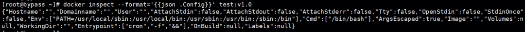 #查看镜像的配置信息docker inspect --format='{{json .Config}}' test:v1.0