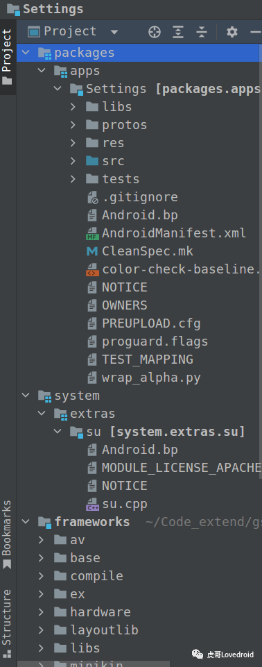 }工程不仅可以导入Java/kotlin工程,也可以导入C++工程 如下作者导入了system/extras/su模块