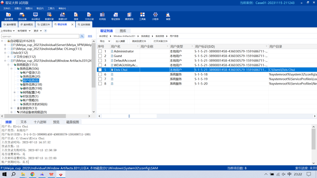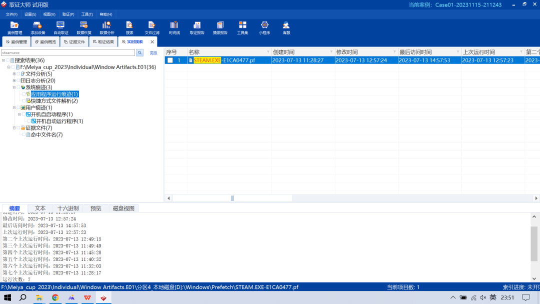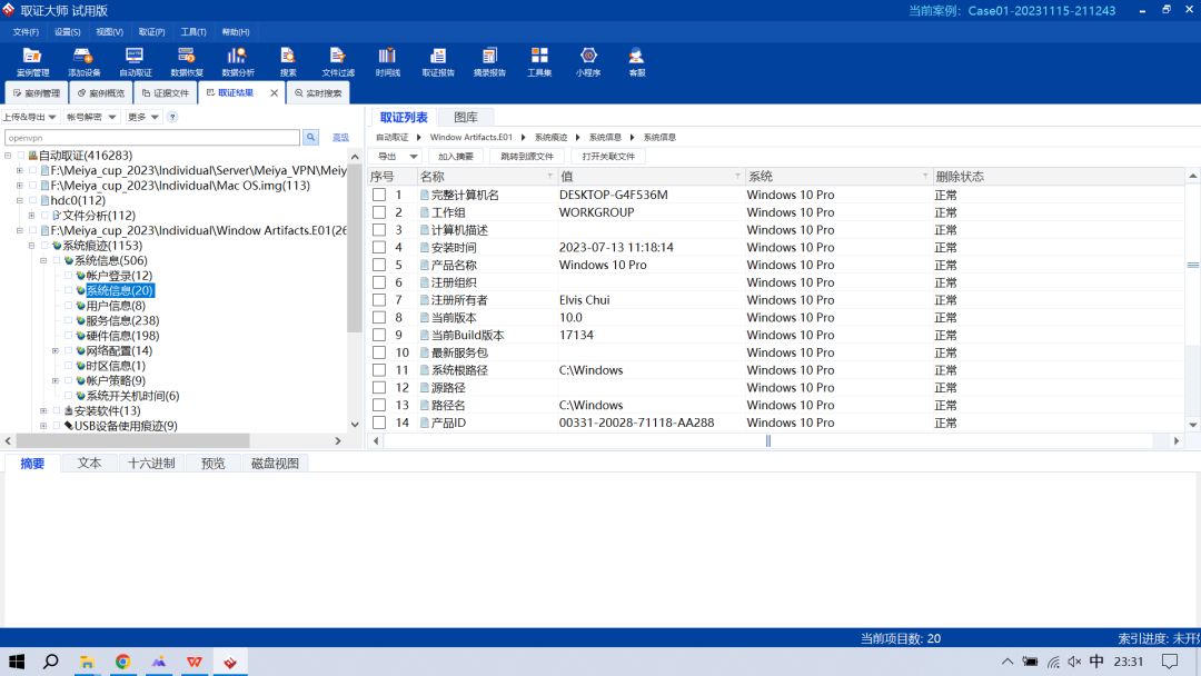 做到这才进入核心计算机题目,题量很大,难度很低,大多数直接看取证结果就出答案了,应该是最好拿分的部分