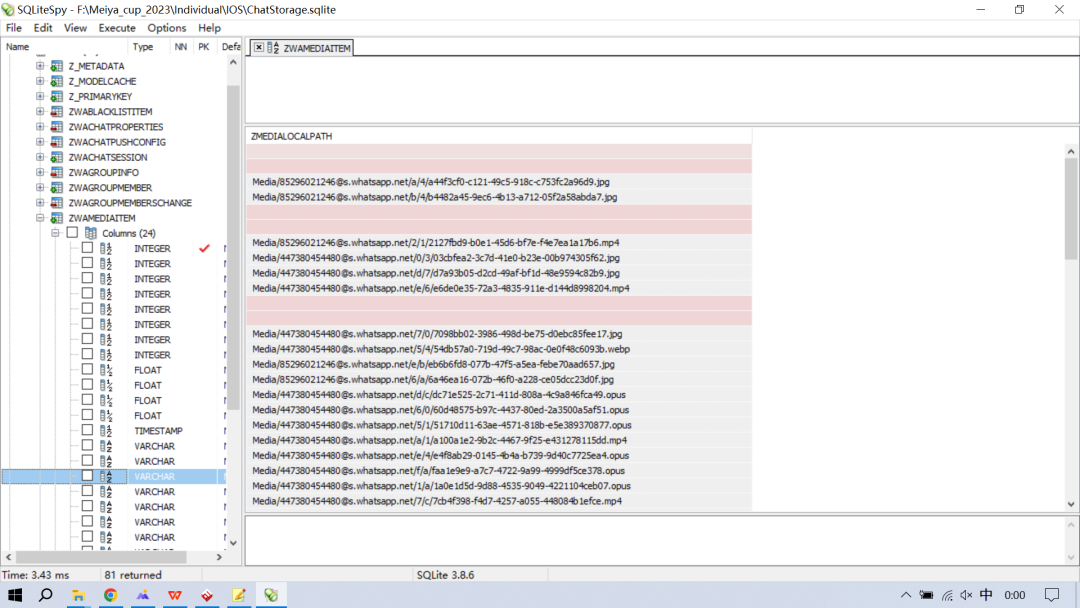 录音数量,数据库名称查找,看到所有前缀都是ZWA,直接找media相关的,翻表看到具体数据