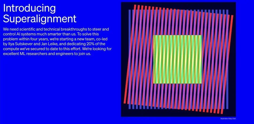 Sutskever 指出了 AlphaGo 臭名昭著的 「Move 37」。AlphaGo 的第 37 手. 图片来自:uffpost.com在对阵 Sedol 的第二场比赛中,AI 做出了让评论员都感到困惑的举动。他们认为 AlphaGo 搞砸了,但事实上,它下出了游戏历史上从未见过的妙手。正是这种思路使 Sutskever 做出了他职业生涯中最大的转变。他与 OpenAI 的科学家 Jan Leike 一起成立了一个团队,专注于他们所谓的「超对齐」。Superalignment. 图片来自:twitter.com对齐是行话,意味着让 AI 模型做你想做的事,仅此而已。Superalignment 是 OpenAI 应用于超级智能的对齐术语。目标是提出一套故障安全程序来构建和控制这项未来技术,OpenAI 将把五分之一的庞大计算资源分配给这个问题,并在四年内解决它。现有的对齐方法不适用于比人类更聪明的模型,因为它们从根本上假设人类可以可靠地评估人工智能系统正在做什么。但随着人工智能系统变得越来越强大,它们将承担更艰巨的任务。这将使人类更难评估它们。在与 Ilya 组建超对齐团队时,我们已着手解决这些未来的对齐挑战。