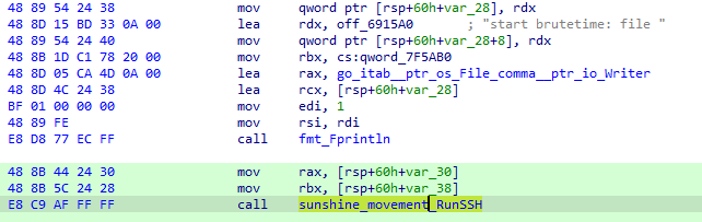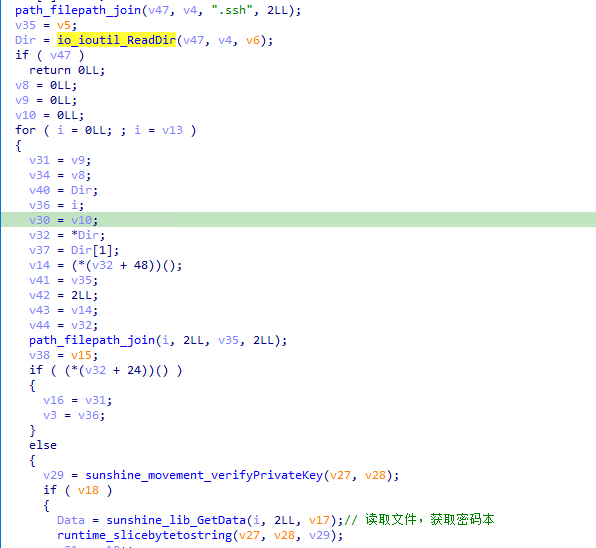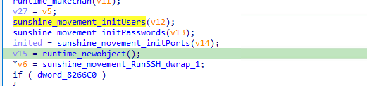 勒索软件的main函数的主要功能有两部分:sunshine_movement_RunSSH和sunshine_lib_RunDec。