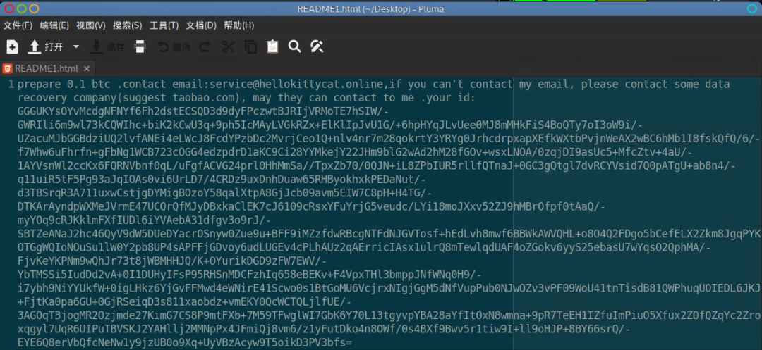 勒索模块会扫描大部分目录并进行数据加密,勒索信如下。