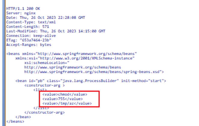 Chmod.xml将下载的文件/tmp/az文件权限修改为755(加上可执行权限)。Exec.xml执行该文件。