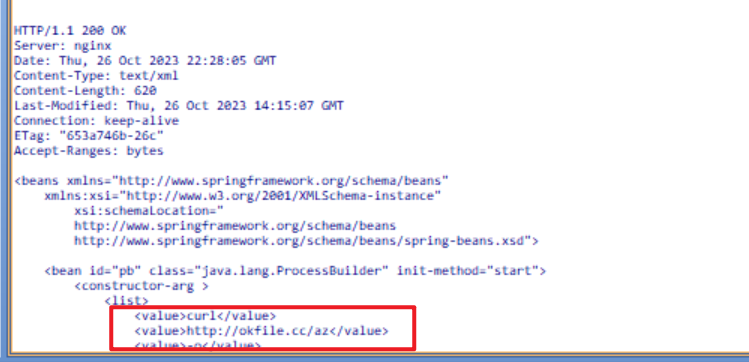 奇安信已观察到网络攻击团伙利用该漏洞对多家企业发起攻击,根据使用的样本名称、恶意软件类型以及网络基础设施,可以将其划分为不同攻击团伙。攻击者利用ActiveMQ漏洞请求8.217.130[.]229上托管的多个xml文件:upload.xml,chmod.xml,exec.xml。