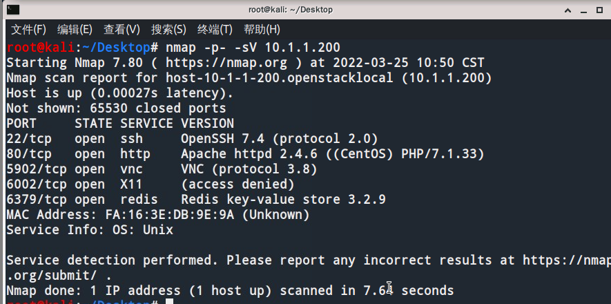 使用全端口扫描,探测存在的服务:nmap -p- -sV 10.1.1.200