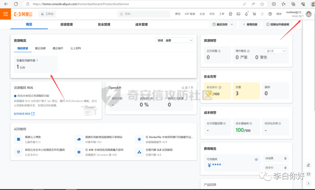 阿里云是我个人认为公有云最简单也是最容易上手的一个云服务,在很多我们挖洞或者是攻防的过程中会遇到一些ak/sk,习惯了使用cf工具一把梭,从而触发短信或控制台告警,导致目标响应过快,达不到渗透目的,所以本篇写一下自己个人的一些小技巧和心得,如何手动接管阿里云控制台,并且不触发短信告警。