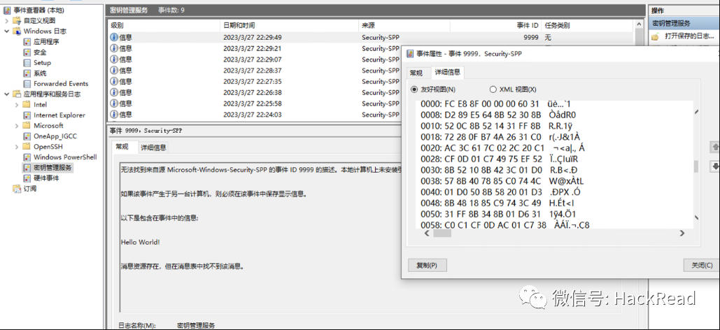 只需在Write-EventLog中使用-RawData参数,就可以在事件日志字段中包含二进制数据,而且必须将二进制数据作为字节数组传到-RawData参数中。我们可以将其包含数据的十六进制字符串转换为字节数组,然后再传递。