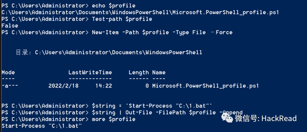 Windows PowerShell 是一种命令行外壳程序和脚本环境,使命令行用户和脚本编写者可以利用 .NET Framework的强大功能。Powershell配置文件其实就是一个powershell脚本,他可以在每次运行powershell的时候自动运行,所以可以通过向该文件写入自定义的语句用来长期维持权限。