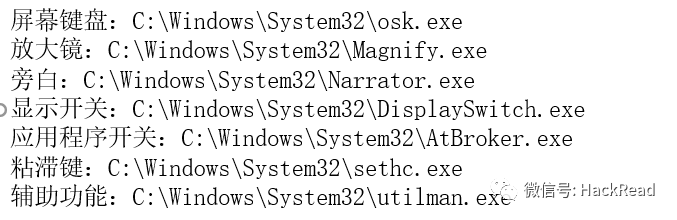 辅助功能提供了其他选项(屏幕键盘、放大镜、屏幕阅读),可以帮助人更轻松地使用Windows操作系统,但是此功能可能会被滥用,以在已启用RDP且已获得管理员级别权限的主机上实现持久性。