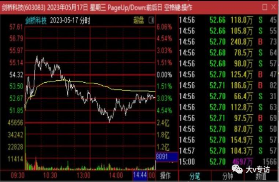 那当时的龙头剑桥科技是什么表现呢?剑桥科技跟随板块一同回落,最低至-6左右。