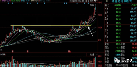 标准回踩到支撑线的个股较少,多数是回踩到5日均线、10日均线后就转身向上,如果均线支撑与筹码峰支撑双重支撑,就要在均线附近低吸,不能死板。