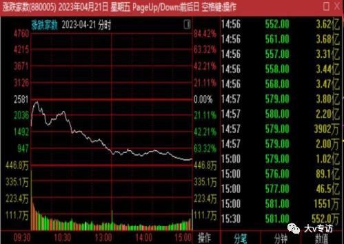 4月21日,尾盘涨跌家数最低只有500多家,妥妥的冰点,这时候就是我们低吸龙头的好时机!而此时的龙头走势是什么样子的呢?