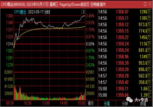 5月17日,cpo板块开盘迅速拉升,午后回落至均线附近。而当天的日内领涨股走势是这样的,中京电子封板纹丝不动,震有科技、联特科技在板块分歧时未回落均线。