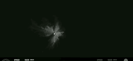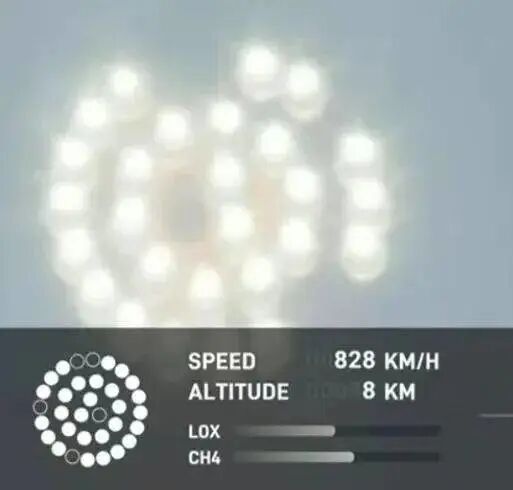 短暂的叫停之后,倒计时恢复,众人的欢呼声中,装有 33 个猛禽发动机的助推器带着航天器升空,点火时发出巨大的轰鸣,火焰明亮,上升时的轨迹笔直而瑰丽。当时间来到 2 分 50 秒左右,一二级成功分离,但