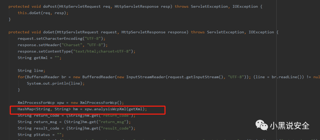 可以看到这里调用了xpw.analysisWcpXml来解析xml。