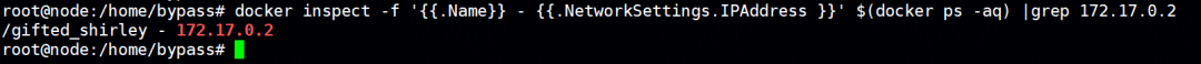 (2)一个命令获取所有容器名称及其IP地址,匹配172.17.0.2 ,从而定位到容器。
