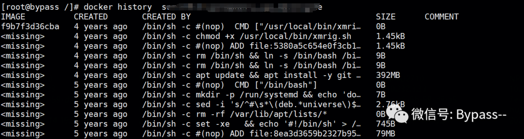 (2)我们需要进一步确认的是挖矿程序时在容器运行过程中被植入了,还是镜像文件中已经存在挖矿程序。