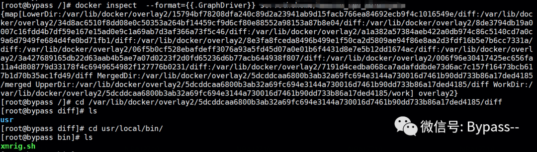 通过docker inspect 快速定位镜像文件系统在宿主机上对应的目录,从镜像中提取恶意文件进行对比,以确认入侵的源头为恶意镜像。